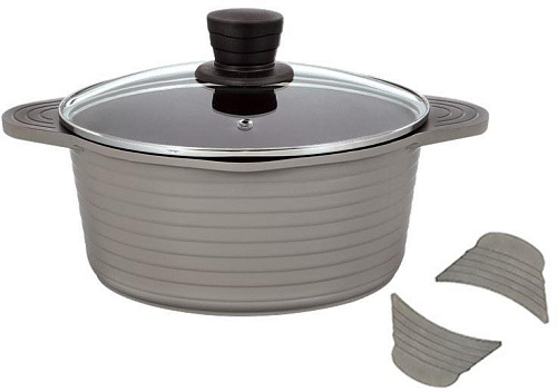 Для удобства перемещения кастрюли предусмотрены прочные литые ручки, а чтобы не обжечься в комплектацию входят силиконовые прихватки со специальным рельефом, обеспечивающим комфорт при удержании кастрюли в руках.