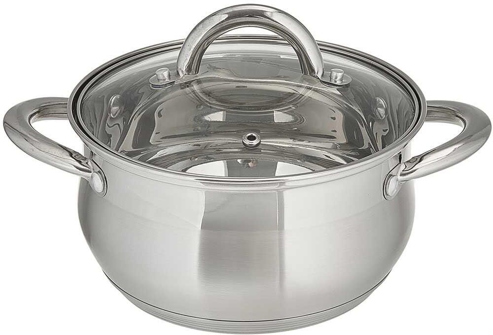 Кастрюля 5 л, 22 см, из нержавеющей стали со стеклянной крышкой WEBBER BE-354/2 Параметры Объем 5 л Диаметр 22 см Высота 13 см Толщина стали 0,5 мм Описание Кастрюля из высококачественной нержавеющей стали Серия: Aurora Стеклянная крышка с отверстием для отвода пара Термосберегающее пятислойное дно с повышенной термоотдачей Специальная форма, исключающая скопление остатков пищи и жира Быстрый нагрев пищи, длительное удержание тепла Для приготовления пищи достаточно небольшого количества воды и масла Минимальные потери минеральных веществ, витаминов и вкусовых качеств Может быть использована на всех типах кухонных плит, включая индукционные Подходит для мытья в посудомоечной машине