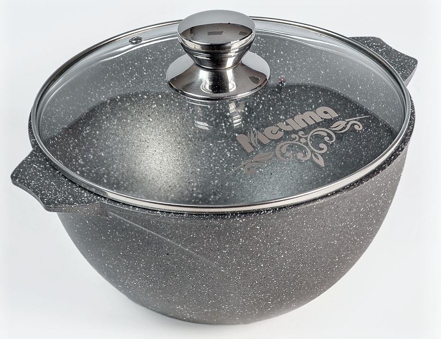 Дополнительная информация Казан для плова с антипригарным покрытием 7л Мечта Гранит Black - 1 шт., стеклянная крышка - 1 шт.