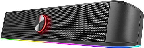 Компактный саундбар с LED подсветкой и функцией Bluetooth под монитор вашего ПК. Регулятор громкости со встроенным выключателем удобно расположен на передней панели, а на верхней панели сенсорная панель управления подсветкой и переключения режимов AUX/Bluetooth