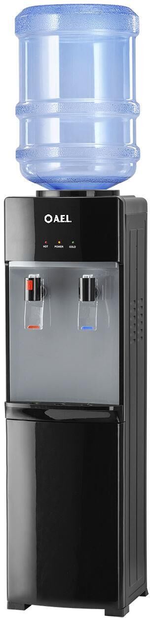 Напольный кулер с электронным охлаждением LD-AEL-425 black/silver. Верхняя загрузка бутыли. Черный корпус с посеребрянной вставкой. Удобные краники "нажим кружкой". На кране горячей воды кнопка от случайного нажатия.