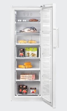 Морозильная камера общим объемом 266 л оснащена большими ящиками для хранения продуктов и статической системой охлаждения. Дверь морозильной камеры может быть установлена с открытием в любую сторону и имеет антибактериальный уплотнитель, который снижает рост и распространение бактерий и микробов.