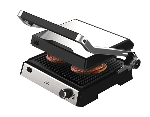 Гриль электрический, мощность 2000 Вт, корпус из матовой нержавеющей стали, плавающая крышка для регулировки толщины с 5 различными настройками высоты, съемные антипригарные панели, встроенный поддон для жира, регулятор температуры с индикатором, скребок в комплекте, панели можно мыть в посудомоечной машине