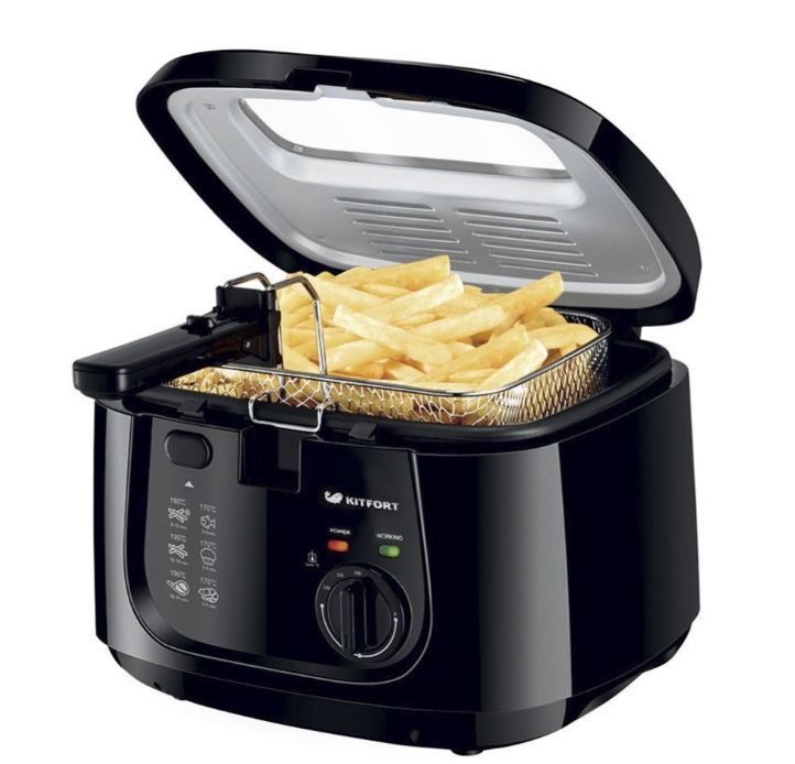 Объём масла 2.5 л. Мощность 1800 Вт. Управление электронное. Индикатор работы/нагрева есть. Регулировка температуры есть. Смотровое окно есть. Антипригарное покрытие есть. Фильтр против запаха есть. Материал корпуса пластик. Длина шнура 69 см.. Цвет черный. Размеры 310 х 292 х 208 мм. Вес 1.88 кг.