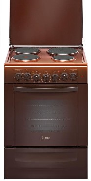 Габаритные размеры: 60х60х85 см. Крышка металл эмаль. Таймер электромеханический, Турбо-гриль, Конвекция, Вертел с электроприводом, Вентилятор, ТЭН-гриль, Подсветка духовки Цвет коричневый.