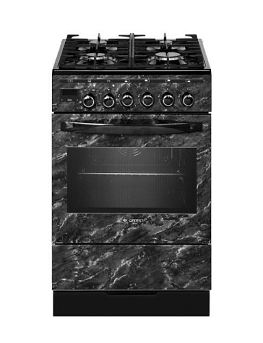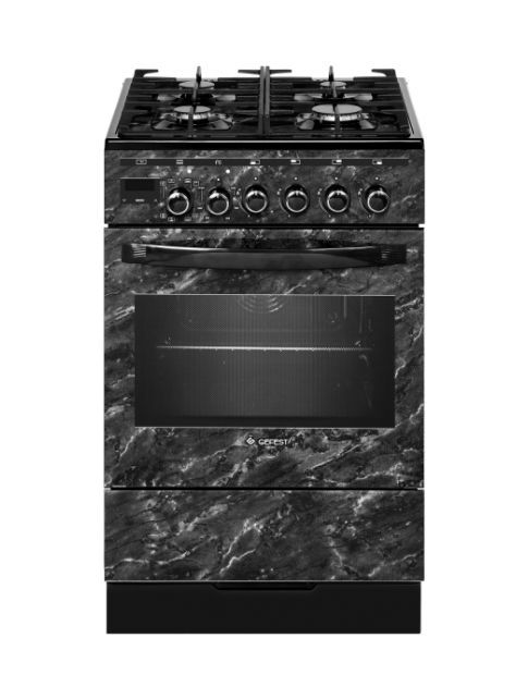 Газоэлектрическая плита. Цвет: черный с рисунком "мрамор". Варочная поверхность: стеклянная. ШхГхВ: 50х58.5х85 см. Объём духовки: 55л. Масса нетто, кг: 45.8. Диапазон номинальных напряжений, В: 220-230. Духовка: электрическая. Без крывшки. Присоединительная резьба газопровода: G1/2. Вертел с электроприводом. Выдвижной ящик для посуды и принадлежностей. Газ-контроль горелок стола. Гриль электрический. Ножки регулировочные. Подсветка духовки одинарная.Съемные проволочные направляющие духовки. Таймер сенсорный многофункциональный. Терморегулятор (термостат). Ускоренный нагрев с конвекцией. Чугунные решетки горелок стола. Шашлычница. Электророзжиг горелок, встроенный в ручки.