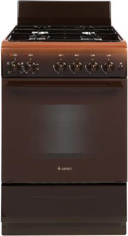 Габариты, ШхГхВ, см: 50x58.5x85; Цвет: коричневый; Дизайн: классический; Ширина, см: 50; Фасад: эмалированный; Варочная поверхность: эмалированный; Решетки стола: стальные; Крышка стола: щиток; Присоединительная резьба газопровода: G 1/2; Номинальная потребляемая мощность электроэнергии, кВт: 1,84-2,02; Тип подключения: газоэлектрический; Количество зон приготовления: 4; Газ-контроль горелок стола; Электророзжиг горелок стола: кнопка розжига на панели; Тип направляющих духового шкафа: Съемные проволочные; Тип очистки: Гидролизная: Внутреннее покрытие духового шкафа: Эмаль легкой очистки SMART CERAMIC; Количество стекол в дверце духового шкафа: 2; Тип духового шкафа: Электрический: Ящик для посуды и принадлежностей: Откидная крышка; Комплектность: Жаровня, Комплект сменных сопел, Противень, Решетка варочной поверхности (2), Решетка духового шкафа