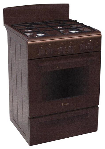 Габаритные размеры ШхГхВ: 60х60х85 см * Цвет: коричневый. Варочная поверхность: эмалированная * Объём духовки: 60 л * Духовка электрическая* Подсветка духовки одинарная * Штампованные направляющие духовки * Терморегулятор (термостат * )Электророзжиг горелок, кнопка розжига на панели *