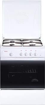 Габариты (ШхГхВ) 60x60x85 см Цвет: белый Объем духовки, л: 63 Количество зон приготовления: 4 Варочная поверхность: эмалированная Фасад: эмалированный Крышка: металлическая крышка Класс электробезопасности: II Газ-контроль духовки Штампованные направляющие духовки Стальные решетки горелок стола Ящик для посуды и принадлежностей с откидной крышкой Термоуказатель духовки