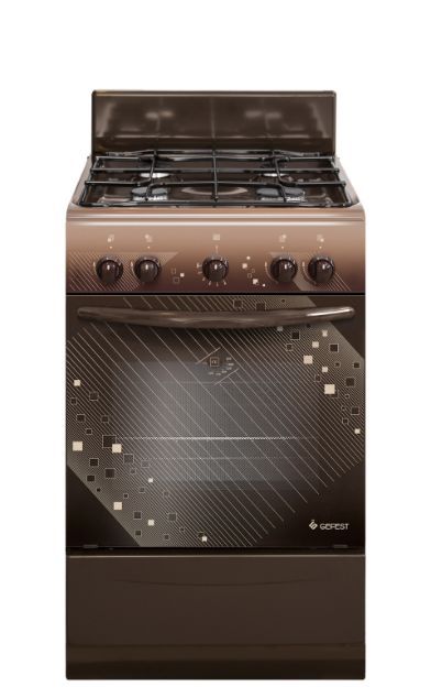 Габаритные размеры ШхГхВ: 50х58.5х85 см * Цвет: коричневый. Варочная поверхность: эмалированная. * Полезный объём духовки: 52 л * Газ-контроль духовки * Термоуказатель духовки * Ножки регулировочные * Штампованные направляющие духовки * Стальные решетки горелок стола * Ящик для посуды и принадлежностей с откидной крышкой *