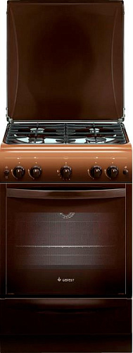 Тип: плита газовая; Габариты: 50х58.5х85 см; Управление: механическое; Тип духового шкафа: газовый; Рабочая поверхность: эмаль; Цвет: коричневый; Полезный объем духовки: 52 л; Количество конфорок/зон нагрева: 4; Электроподжиг панели; Решетки: чугунные; Защитное отключение варочной панели; Объем духового шкафа: 52 л; Очистка: традиционная; Количество режимов работы: 2; Дверца духовки: откидная; Количество стекол дверцы духовки: 2; Защитное отключение духового шкафа; Подсветка камеры; Комплектация: решетка, противень