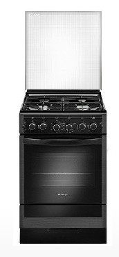 Габариты (ШхГхВ) 50x58,5x85 см. Объем духовки 52л. 4 газ. горелки. Электроподжиг горелок стола. Вароч. поверхность эмалированная. . Таймер механический. Газ-контроль духовки. Вертел с электроприводом. Подсветка духовки двойная. Направляющие духовки проволочные. Терморегулятор (термостат). Ящик для посуды и принадлежностей. Стекл. крышка. Фасад стеклянный черный с растровым рисунком.