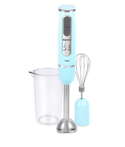 BLACKTON BT HB1030SS Мятно-голубой 2 в 1: блендер+ миксер Мощность 1100 Вт Режим ТУРБО 2 скоростных режима Скорость вращения до 15000 об/мин Многофункциональный нож для измельчения и смешивания Мерный стакан 0.6 л Петля для подвешивания Низкий уровень шума
