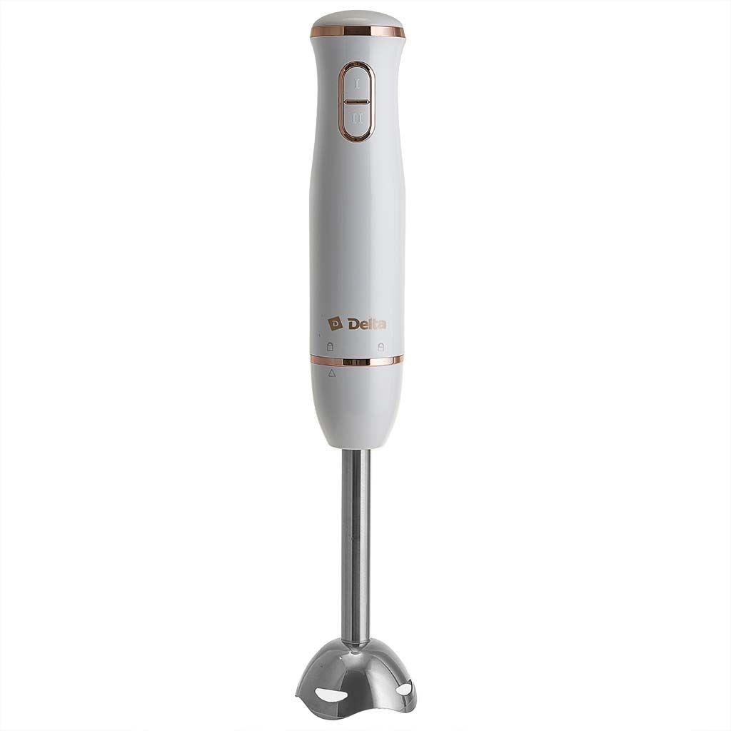Блендер погружной. Мощность 1200 Вт, Потребляемая мощность: 500 Вт, Насадка и нож из нержавеющей стали, 2 скорости работы, Цвет: белый.