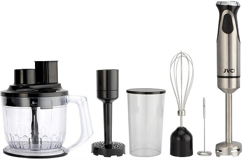 Многофункциональный блендер, двигатель постоянного тока, максимальная мощность 1500 ватт, защита двигателя от перегрева и перегрузок, 2 скорости( включая режим Турбо), бесступенчатая регулировка скорости: до 6 скоростей, усиленный нож из нержавеющей стали - 4 лепестка, кухонный комбайн для измельчения, терки и нарезки кубиками - 1250 мл, мерный стакан с крышкой - 700 мл, венчик для взбивания, насадка для приготовления картофельного пюре, вспениватель молока , длина кабеля 1 метр