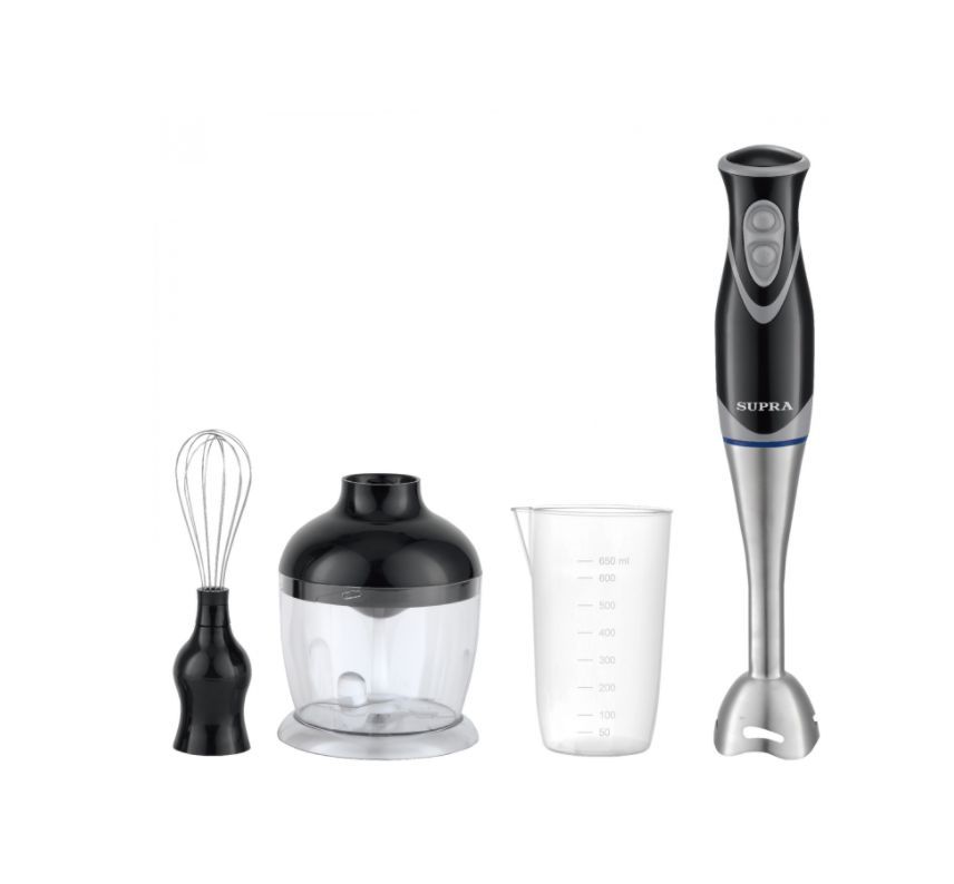 SUPRA HBS-995 Основные характеристики Мощность, Вт. 750 Количество скоростей 2 Импульсный режим работы есть Материал лезвий нержавеющая сталь Комплектация Комплектация блендер, съемная насадка-венчик, мини-измельчитель 750 мл, мерный стакан для взбивания 650 мл Корпус Материал корпуса пластик Энергопотребление Электропитание, в., Гц. 220-240, 50 Артикул HBS-995