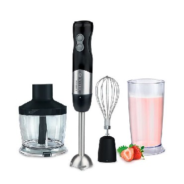 Блендер погружной VITEK VT-3411 BK. Мощность 800Вт. 6 скоростей. Материал корпуса пластик, нерж. сталь. Материал погружной части металл. Емкость мерного стакана 600мл. Емкость измельчителя 500мл. Венчик для взбивания. Плавная регулировка скорости. Турборежим.