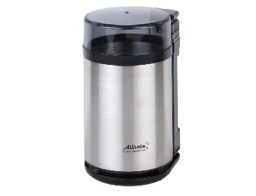 ATLANTA ATH-3393 Современный дизайн Защита от случайного включения Корпус из нержавеющей стали Ножи из нержавеющей стали Рассчитана на 65 г кофе за раз Удобное хранение шнура Мощность 180 Вт
