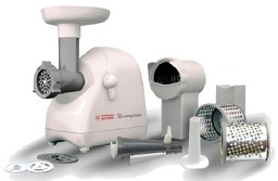 Мясорубка Белвар Помощница КЭМ-П2У 302-09, ф-ция реверс, макс. мощность 1500Вт, номинальная от 220Вт, шинковка, соковыжималка, реверс, насадка д/теста, насадка д/колбас, 3 смен, барабана, 2 смен. решетки, основание д/хранения насадок.