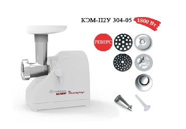 Электромясорубка КЭМ-П2У 304 Пиковая мощность: 300Вт Номинальная мощность: 1800Вт Реверс: есть Цвет: бело Решетки: 2 Тесто/колбасы: есть Соковыжималка: есть