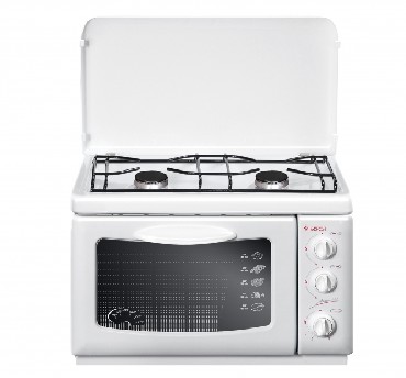 (ШхГхВ) 55х40х40см.Цвет белый.Объем духовки, л: 19.Тип: газовая.Количество зон приготовления: 2.Варочная поверхность: эмалированная.Фасад: эмалированный.Крышка: металлическая крышка.Масса нетто, кг: 17.2.