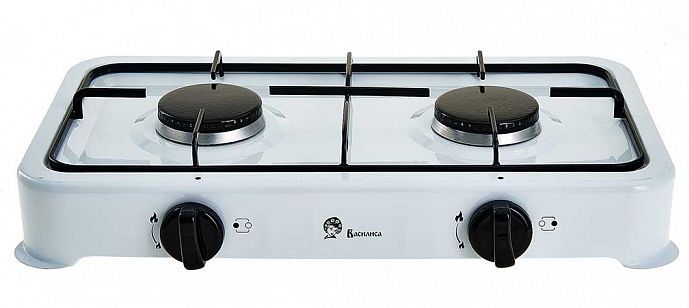 Белый 2-конфорочная эмалированная рабочая поверхность механическое управление возможно подключение к газовому баллону