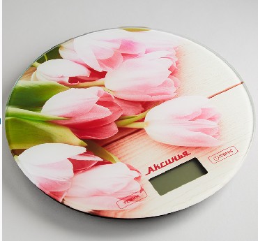 АКСИНЬЯ КС-6503 "Розовые тюльпаны": 5 кг, стекло Параметры Предельная масса взвешивания 5 кг Точность взвешивания ± 1 г Размер весов O20х2см Описание Платформа из закаленного прочного стекла LCD дисплей Индикатор уровня заряда батареи и перегрузки весов Противоскользящие ножки Функция измерения объема воды Функция сброса веса тары и обнуления позволяет последовательно взвешивать ингредиенты блюда, не учитывая массу посуды Выбор единицы измерения Автообнуление/автоотключение Электропитание: 2х1,5В батарея типа ААА (в комплекте) Производитель: Россия