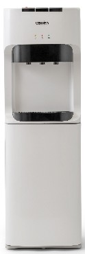 Классический кулер с нижней загрузкой бутыли. Цвет корпуса белый. Боковые панели металлические. Три крана, управление разливом воды при помощи трёх кнопок (горячая, холодная и вода комнатной температуры). Баки горячей и холодной воды из нержавеющей стали. Кран горячей воды имеет "защиту от детей". Электронное охлаждение и нагрев. Бутыль внутри. Мощность нагрева, 650 Вт. Мощность охлаждения, 70 Вт. Производительность нагрева воды, 6.0 Литр/Час. Производительность охлаждения воды, 0.6 Литр/Час. Бак горячей воды, 1.1 Литр. Бак холодной воды, 0.6 Литр. Количество пользователей 20. Гарантия 2 года.