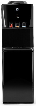 Напольный кулер для воды. Шкафчик - холодильник 20л. Для дома. Для офиса. Бутыль сверху. Бутылеприёмник, верхняя и передняя панели изготовлены из высококачественного, устойчивого к ультрафиолету ABS пластика. Боковые панели стальные. Цвет корпуса черный. Компрессорное охлаждение и нагрев. Мощность нагрева 650 Вт. Мощность охлаждения 120 Вт. Производительность нагрева воды 6.0 литров/час. Производительность охлаждения воды 2.0 литров/час. Три крана, управление кнопками - горячая, холодная и вода комнатной температуры. Защита от детей на кран подачи горячей воды. Три LED индикатора: включение питания, индикатор нагрева, индикатор охлаждения. Баки горячей и холодной воды из нержавеющей стали. Бак горячей воды 1.0 литр. Бак холодной воды 3.0 литр. Количество пользователей 20. Тип крепления для стаканодержателя - на магните и саморезах. Гарантия 2 года.