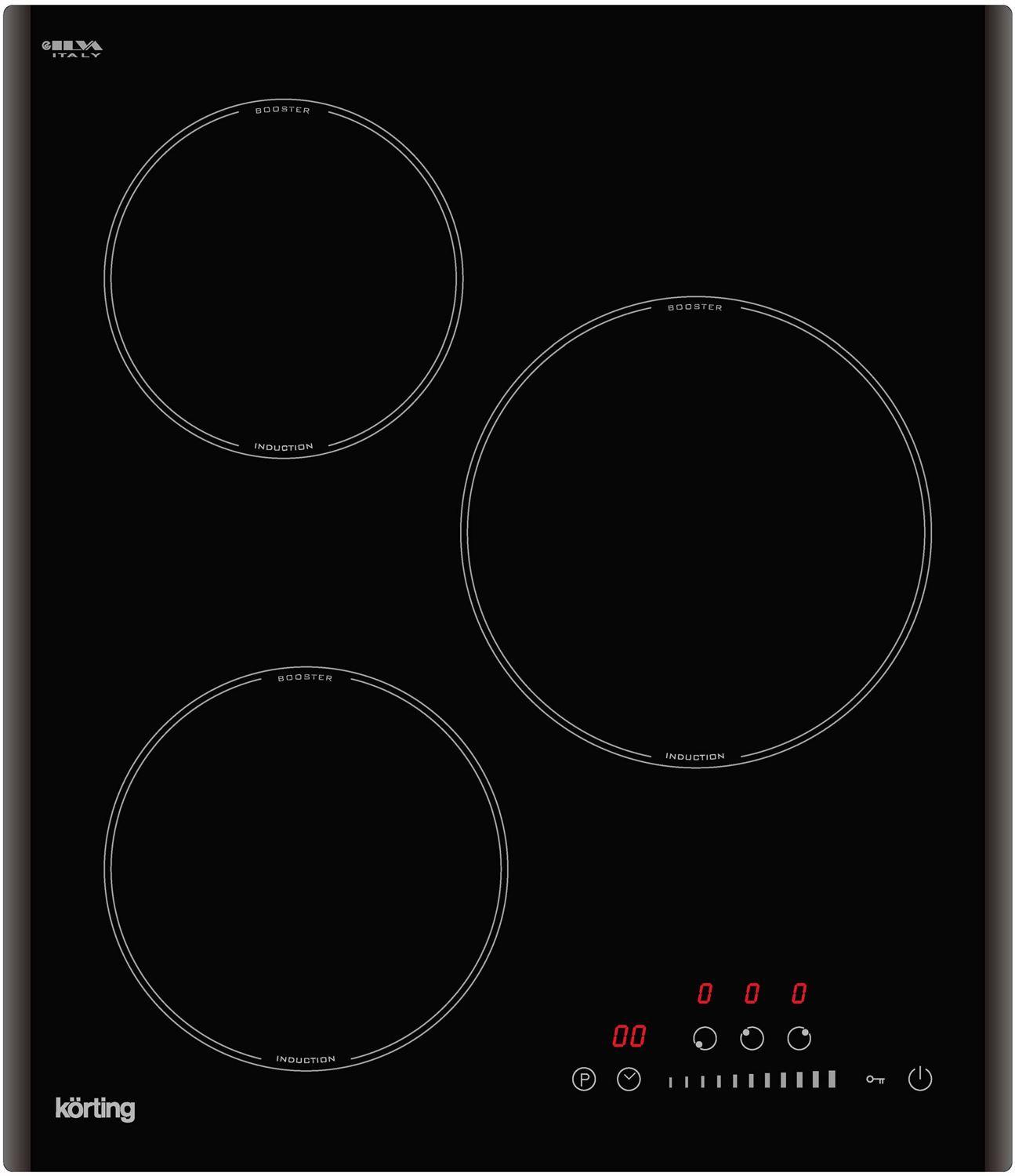 Индукционная варочная панель; Ширина 45 см, сенсорное слайдерное управление, 3 индукционные зоны нагрева, режим Booster на всех конфорках, таймер, индикация остаточного тепла, автоматическое отключение, функция "Защита детей", Цвет - черный, дизайн рамки - 2 cкошенных края