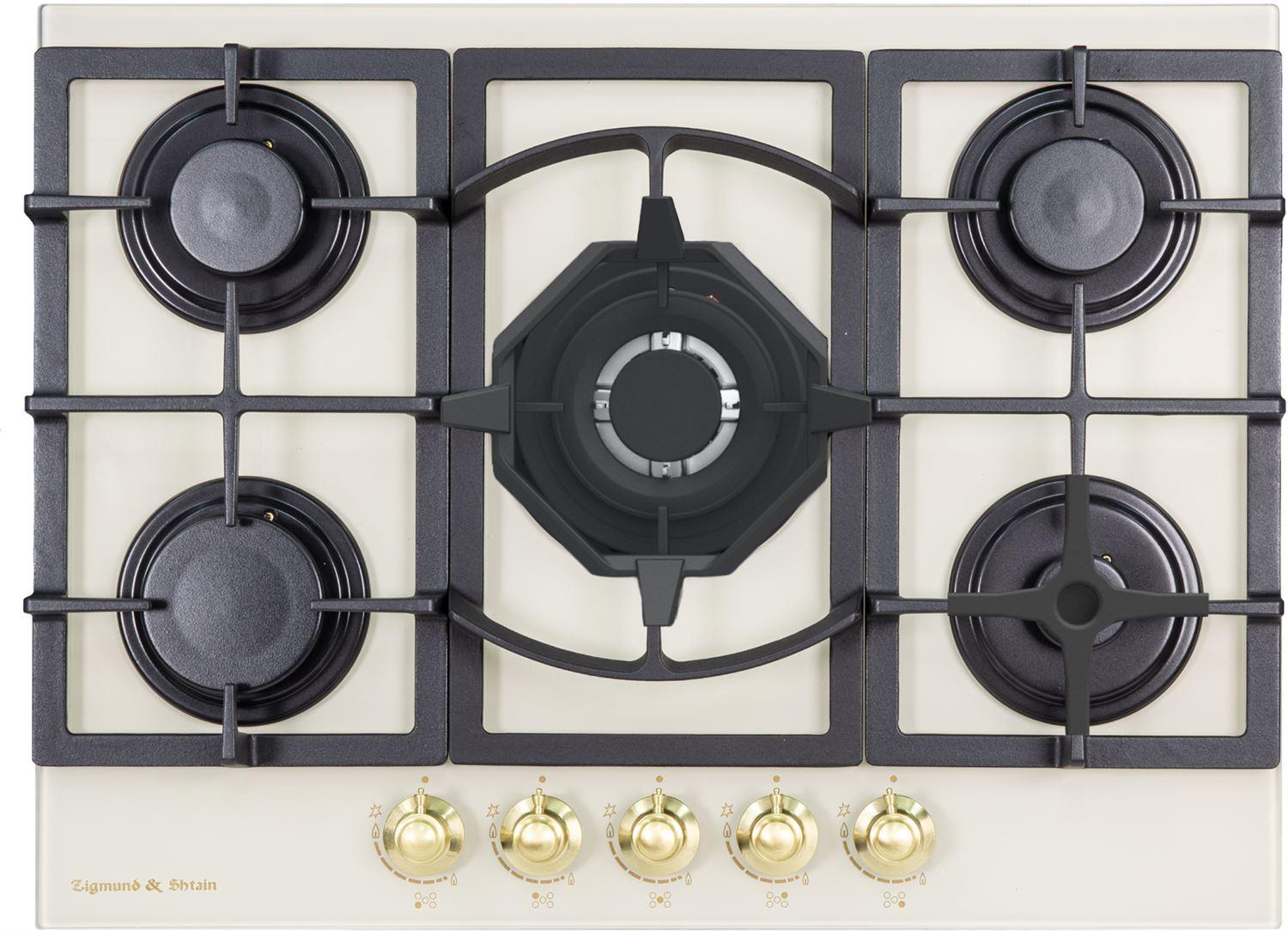 Газовая варочная панель. 5 конфорок. Управление фронтальное. Переключатели поворотные. Материал поверхности: закаленное стекло. Материал решеток/крышек горелок: чугун. Общая мощность: 11000 Вт. Газ-контроль. Электроподжиг на каждой ручке. WOK-конфорка. Адаптер для вока. Адаптер для кофе. Переходники для разных типов газа: для газа G30/30mbar в комплекте. Габариты (ШхГхВ): 690*520*52 мм. Длина шнура питания - 900 мм. Цвет: Бежевый.