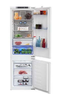Встраиваемый двухкамерный холодильник Beko BCNA275E2S с электронным управлением. Оснащен тремя удобными полками, а также держателем для бутылок и подставкой для яиц. Двери холодильника могут быть перенавешаны в любую удобную сторону. Технология Blue Light обеспечивает голубой свет в отделении для овощей и фруктов, благодаря которому продукты хранятся дольше, сохраняют свой натуральный вкус, больше витаминов и полезных элементов. Фрукты и овощи остаются свежими на 30% дольше.