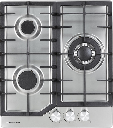 Газовая варочная панель. Цвет: нержавеющая сталь, Цвет фурнитуры: металлик, Количество конфорок: 3, Управление: фронтальное, Переключатели поворотные, Материал поверхности: металл, Материал решеток: чугун, Материал крышек горелок: чугун, Общая мощность: 6180 Вт, Газ-контроль, Электроподжиг, WOK-конфорка, Переходники для разных типов газа, Габариты (ШхГхВ): 455*510*59 мм, Ниша для встраивания (ШхГхВ): 425*480 мм, Длина шнура питания: 1220 мм, Вес нетто: 7,8 кг, Срок службы до 10 лет