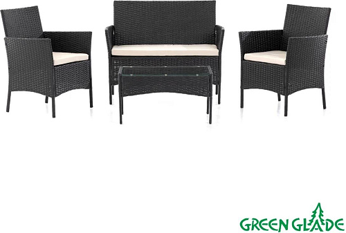 Комплект садовой мебели GREEN GLADE - отличный выбор для того, чтобы отдыхать на свежем воздухе с комфортом. • Комплектация: 2 кресла, двухместный диван, стол • Размер дивана: 101х59,5х81 см • Размеры кресел: 58х59,5х81 см • Размер журнального столика: 71х41х38 см • Материал мебели: полипропилен, имитирующий плетение под ротанг 9х1,1 мм • Каркас: оцинкованная труба с порошковым покрытием • Размер трубы: сиденье/подлокотник: 18х18х0,7 мм, спинка/подлокотник: 12х18х0,6 мм, подлокотник: 13х13х0,6 мм; журнальный столик: 15х15х0,6 мм • Внутренний материал подушек: 5 см, хлопок 800 г/м2 • Ткань подушек: полиэстер 160 г/м2, водонепроницаемый • Материал столешницы: закаленное стекло толщиной 5 мм • Максимальная нагрузка дивана: 130 кг • Максимальная нагрузка кресла: 120 кг • Максимальная нагрузка стола: 25 кг • Цвет мебели: антрацит • Цвет подушек: белый • Цвет стекла: прозрачный • Размер коробки: 98х33х56 см • Вес нетто: 23,7 кг • Вес брутто: 26,8 кг • Производитель: Green Glade • Страна: Китай