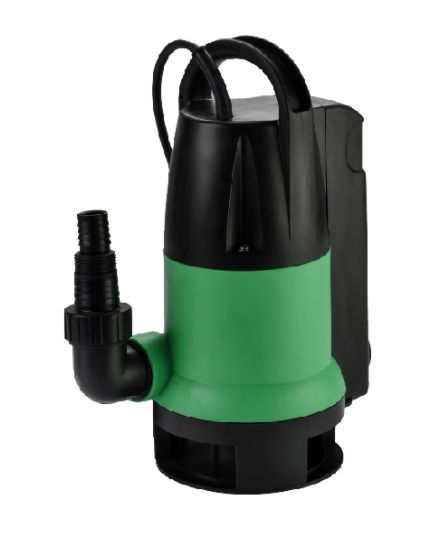 Насос дренажный для грязной воды, мощность 880 Вт, максимальный напор 8 метров, максимальный расход 250 л/мин, максимальный размер пропускаемых частиц 35 мм, максимальная глубина погружения 8 метров, материал корпуса пластик, встроенный поплавок