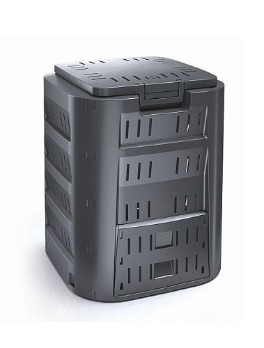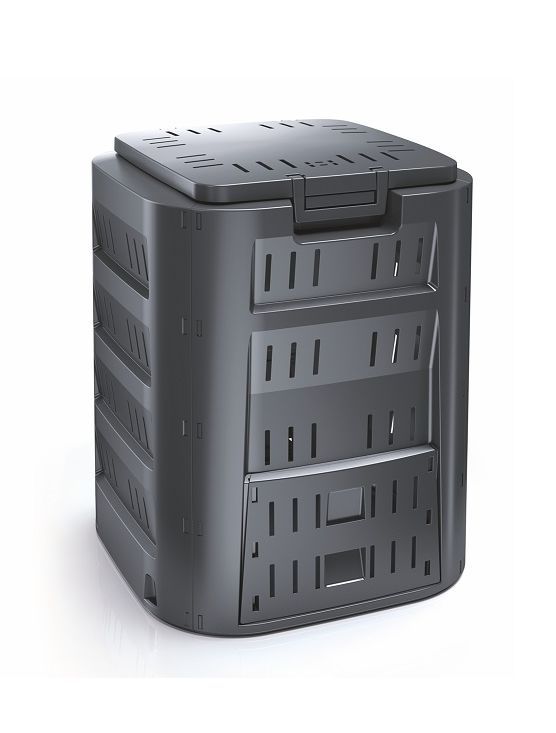 Компактный 320-литровый компостер Compogreen IKL320C – это эффективный и надежный инструмент для компостирования. Изделие имеет удобную ручку для закрывания крышки, а в нижней части – откидные створки, которые обеспечивают постоянный доступ к готовому удобрению. • Размер: 70х70х80 см • Вес нетто: 4,93 кг • Объём: 320 л • Материал: полипропилен • Наличие дна: нет • Цвет: черный • Упаковка: стрейч-лента • Размер упаковки: см • Вес брутто: кг • Производитель: Prosperplast • Страна: Польша