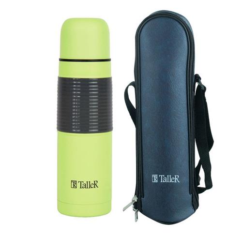 Термос стальной 1 л Lester/Лестер, зеленое матовое покрытие. Кнопочный переключатель, узкое горло, силиконовый протектор, чехол с ремешком (цвет — серый). • Высококачественная нержавеющая сталь 18/10, пищевой пластик • Высота (включая внешнюю крышку):