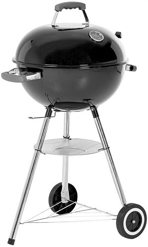 Размер гриля: 47 х 47 х 90 см Размер жарочной поверхности: O 43 см Рабочая высота: 70 см Жаростойкое покрытие Хромированная решетка для приготовления Цвет: черный Размер упаковки: 48 х 48 х 28 см (0,065 м3) Толщина стали: 0,5 мм / крышка и 0,8 мм / чаша С поддоном для пепла С нижней полкой для хранения подручных приборов С удобными ручками на крышке и чаше гриля Материал ручек: нержавеющая сталь + бакелит (пластмасса) На колесах (2 шт, материал PP)