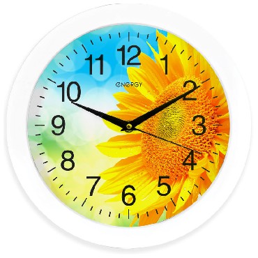 Часы настенные кварцевые ENERGY модель ЕС-97 подсолнух. Питание от 1 батарейки типа АА (в комплект не входят). Напряжение: 1 х АА 1.5В. Размер 27,5*3,8 см. Корпус: пластик. Плавный ход.