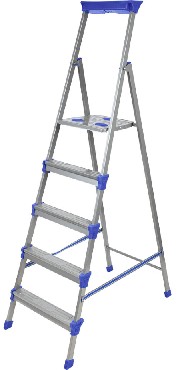 Стремянка металлическая 5 ступеней, высота до рабочей площадки 1065мм, ширина ступени 65мм, многофункциональный лоток для инструментов, страховочная лента, максимальная нагрузка 150кг