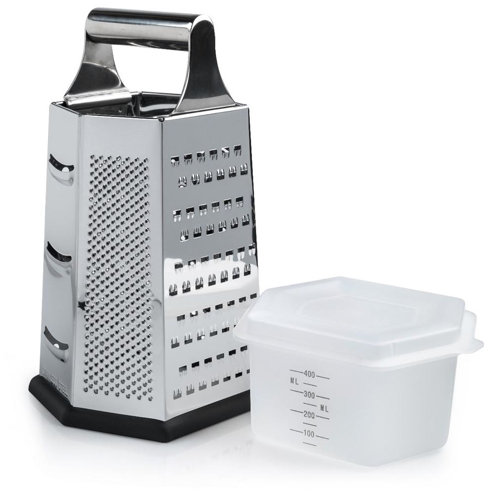 Дополнительная информация лезвия: крупная терка, средняя терка, мелкая терка, шинковка, фигурная шинковка, шредер; толщина стенок – 0,3 мм