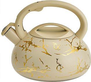 Параметры Объем 3 л Толщина стали 0,6 мм Описание Чайник из нержавеющей стали со свистком Высококачественная нержавеющая сталь c цветным декоративным покрытием, матовая полировка Цвет: бежевый с золотом Термосберегающее индукционное дно Нейлоновая ручка с кнопкой открывания носика Цвет ручки и крышки: бежевый Пригоден для использования на всех типах кухонных плит, включая индукционные