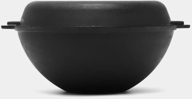 Материал: чугун; Объем: 5 л; Диаметр: 28 см; Крышка-сковорода высотой 4 см; Литые металлические ручки