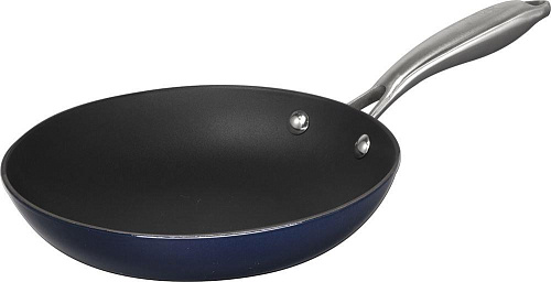 Сковороду удобно держать в руке благодаря эргономичной стальной ручке, которая обеспечивает надежный захват и предотвращает скольжение. Надежное крепление - на клепках. Ручка не нагревается при использовании. Внешние покрытие сковороды - эмаль в глубоком синем цвете.