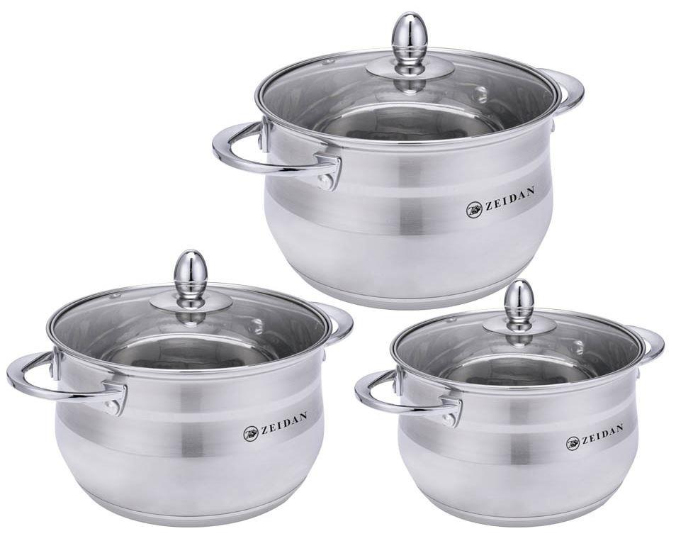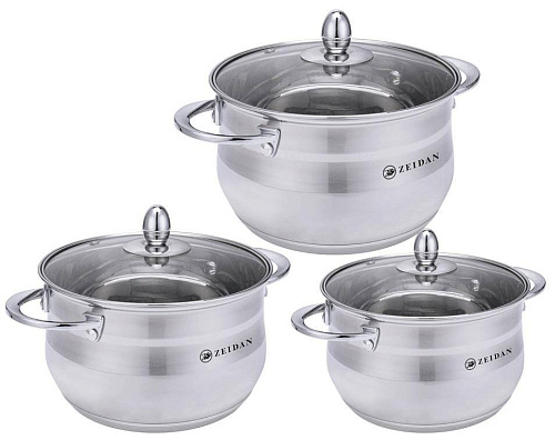 Набор посуды ZEIDAN Z-50659 6 предметов, Набор кастрюль, 6 предм. (3 КАСТРЮЛИ С КРЫШКАМИ: 4.0 л (O20 см ), 3.0 л (O18 см ), 2.1 л (O16 см ), нержавеющая сталь, 5-ТИ СТЕПОВОЕ КАПСУЛИРОВАННОЕ ИНДУКЦИОННОЕ ДНО, комбинированная полировка снаружи, матовая по