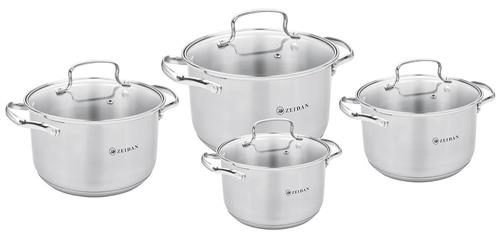 Набор посуды ZEIDAN Z-50822 8 предметов, Набор посуды, 8 предм. (4 КАСТРЮЛИ С КРЫШКАМИ: 4,0 Л (O20 см ), 5,1 Л (O22 см), 6,6 Л (O24 см ), 8,2 Л (O26 см ), нержавеющая сталь, 5-ти СТЕПОВОЕ КАПСУЛИРОВАННОЕ ИНДУКЦИОННОЕ ДНО, крышки - стекло, ручки на корпусе и крышке металлические, комбинированная полировка снаружи, матовая полировка внутри. Подарочная упаковка.