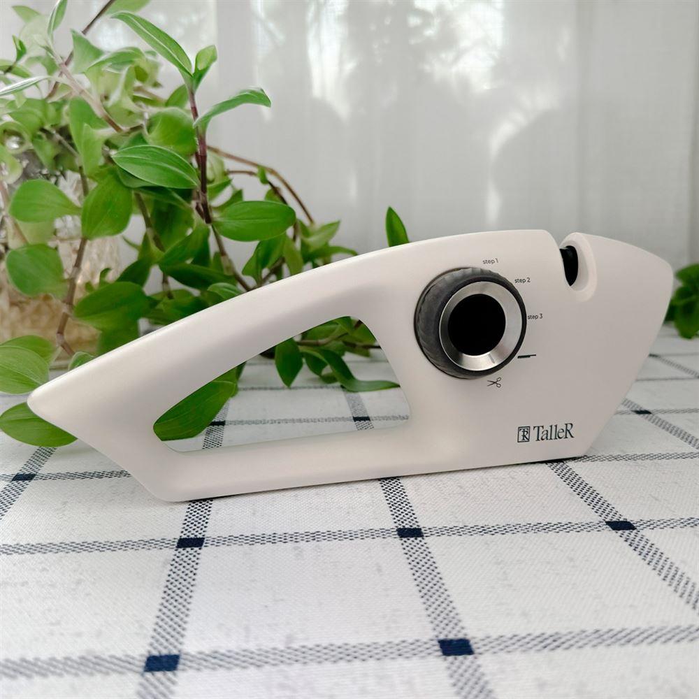 Hygge 25,7x9,6x5,3см Подходит для всех кухонных ножей и для заточки ножниц. Материалы: ударопрочный пластик, нержавеющая сталь, карбид вольфрама, корунд Упаковка - цветная коробка Слоты для заточки: 1) Карбид вольфрама (твердость по Роквеллу: HRA 90) 2) Алмазн. (зернистость 600#) 3) Керамич. (зернистость 1000#) 4) Хлебные ножи: керамич. (зернистость 400#) 5) Ножницы: алмазн. (зернистость 600#)