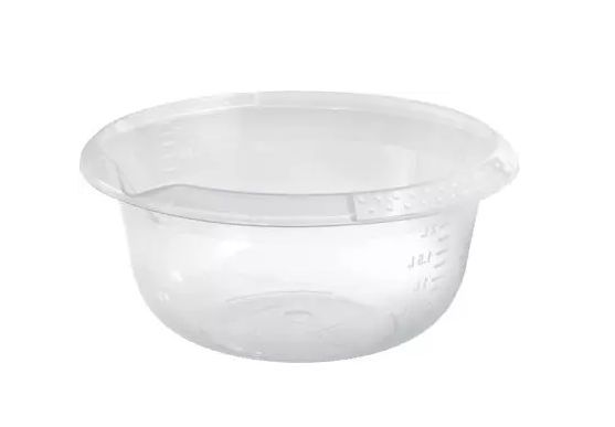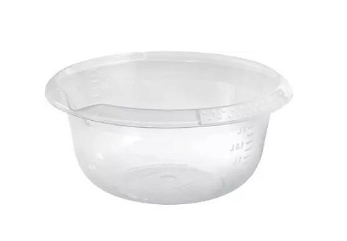 ЦВЕТ: прозрачный РАЗМЕР ИЗДЕЛИЯ: 240 x 240 x 110 мм МАТЕРИАЛ: Полипропилен Емкость из пищевого пластика для использования в кулинарии или быту. Прозрачный корпус и мерные деления на внутренней поверхности помогут в соблюдении пропорций смешиваемых продуктов и в замере объема налитой жидкости. Носик на кайме удобен для слива.